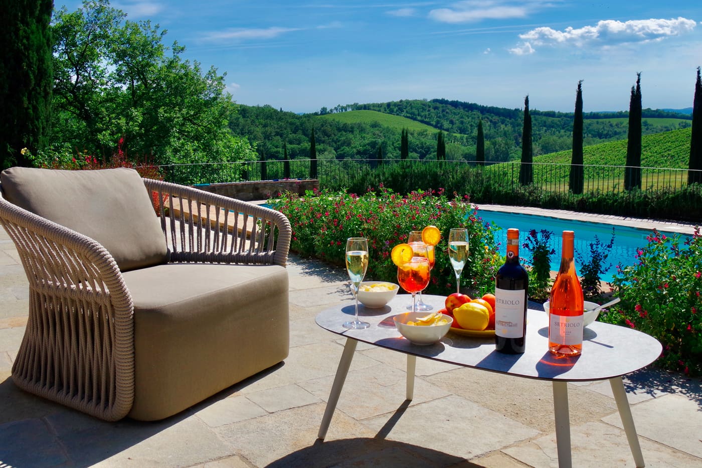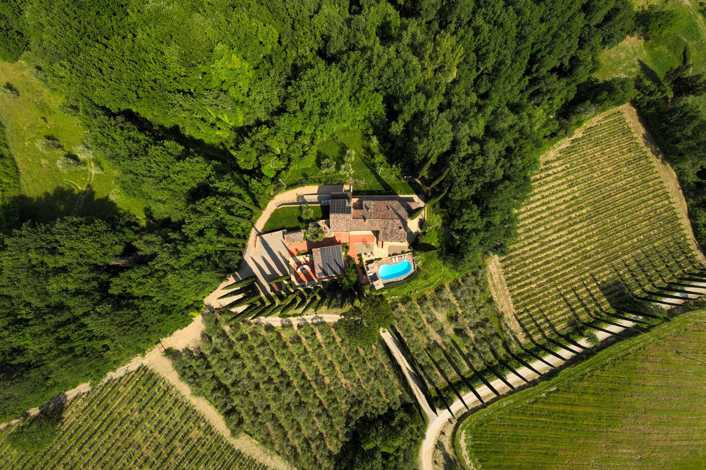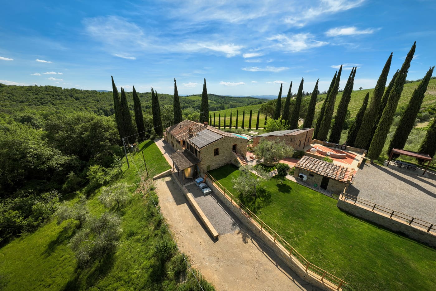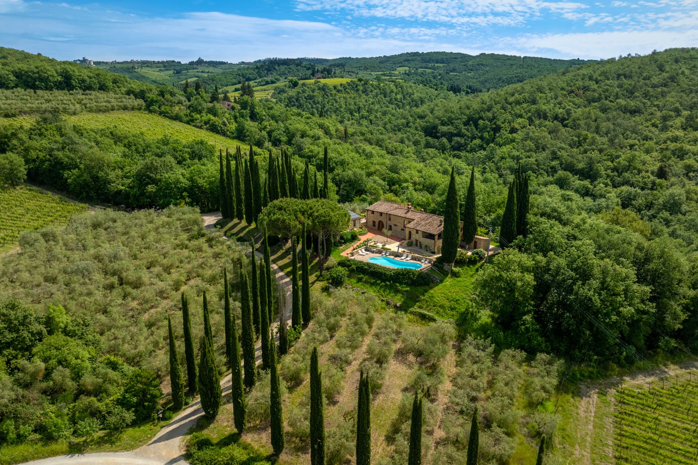 Setriolo is about five kilometres away from the buzzing town of Castellina in Chianti, north of Siena. The area boasts vineyards and olive groves typical of the Tuscan hills.