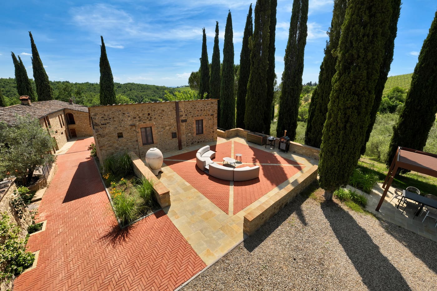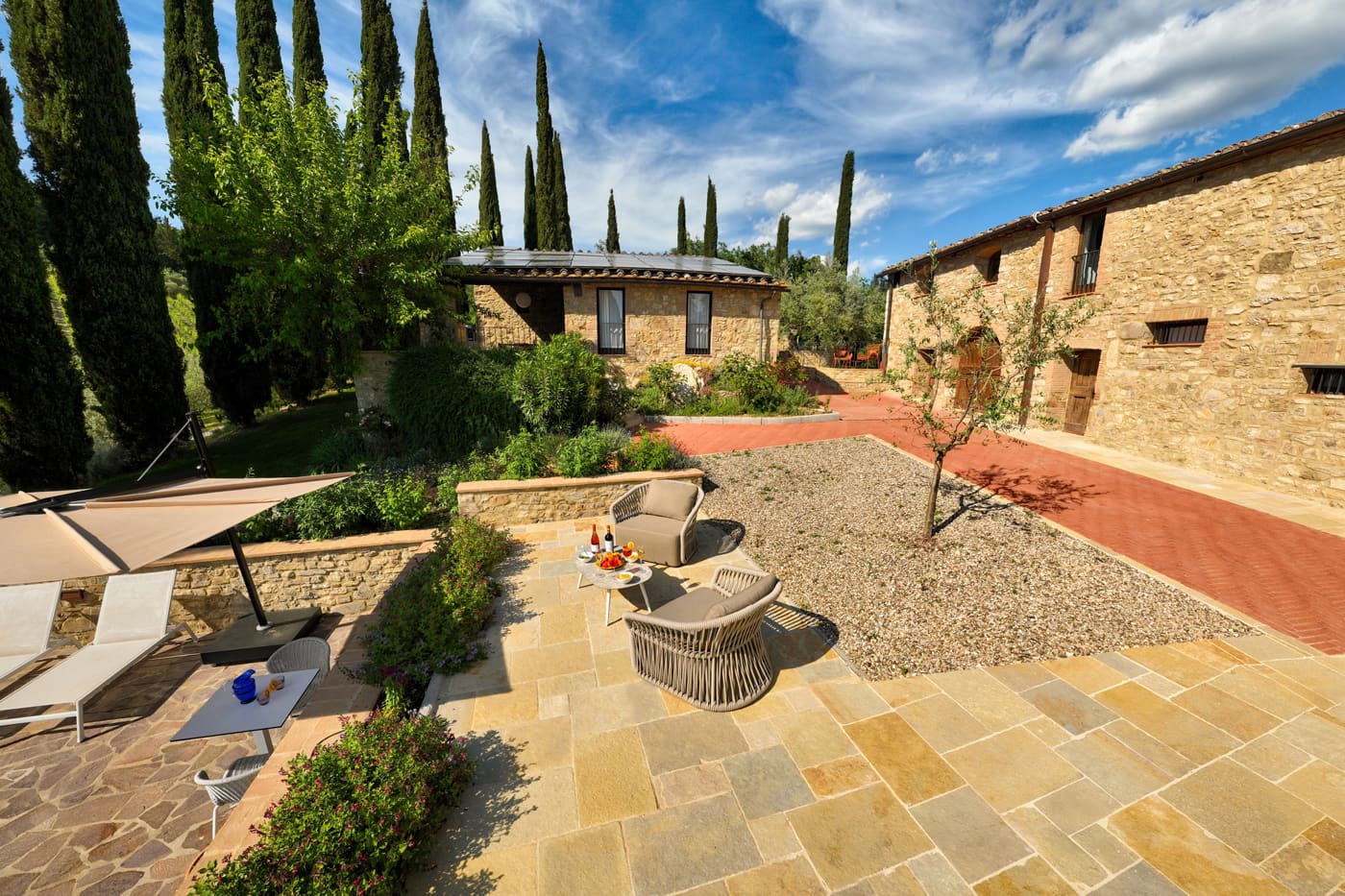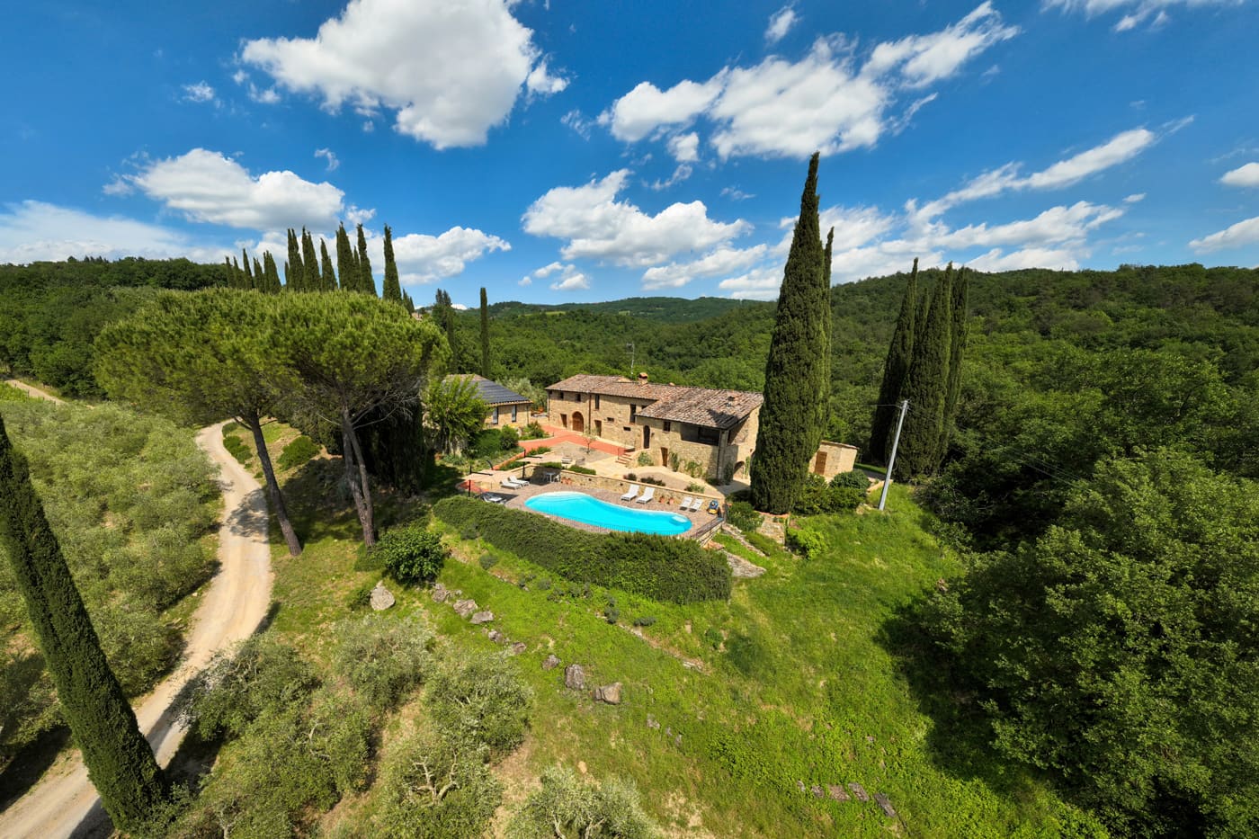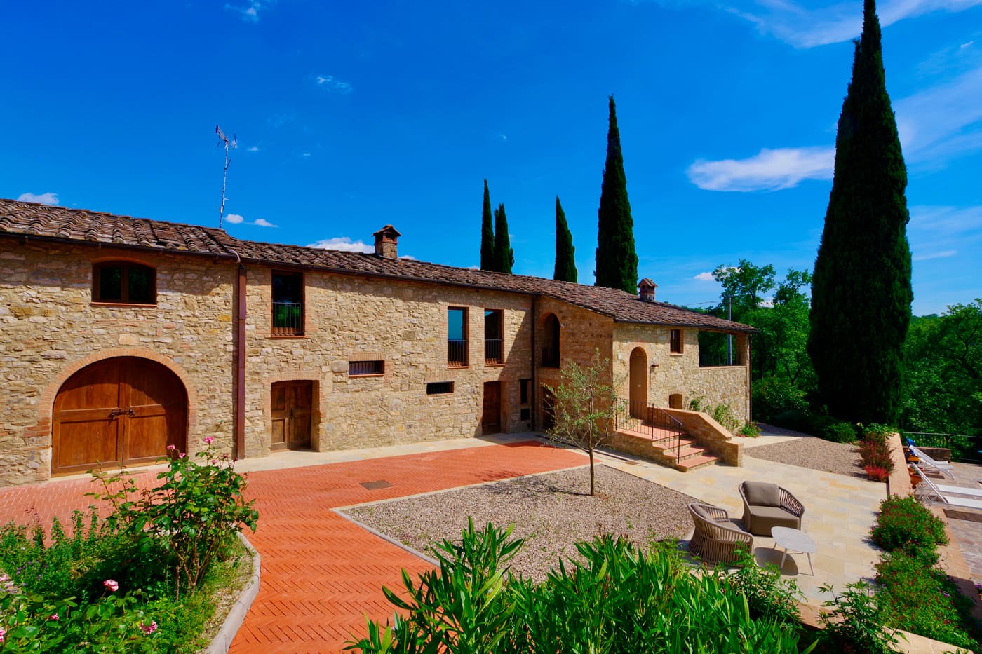 Setriolo is a very beautiful and recently renovated ‘Podere’, a running organic winemaking farm about five kilometres from Castellina in Chianti. It is accessed along a two-kilometre ‘strada bianca’, a ‘white road’ for which Tuscany is famous.