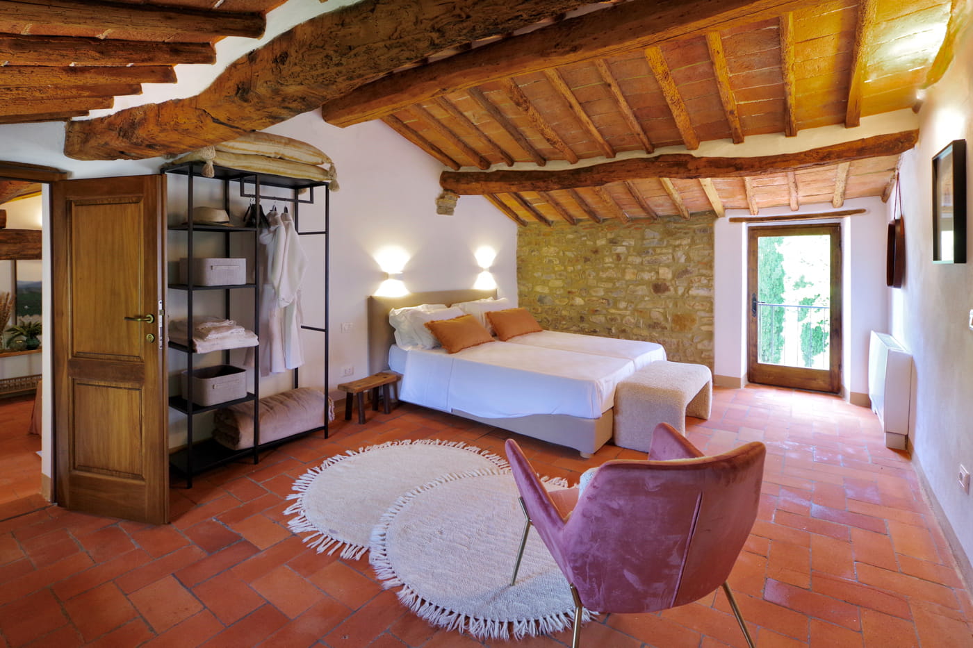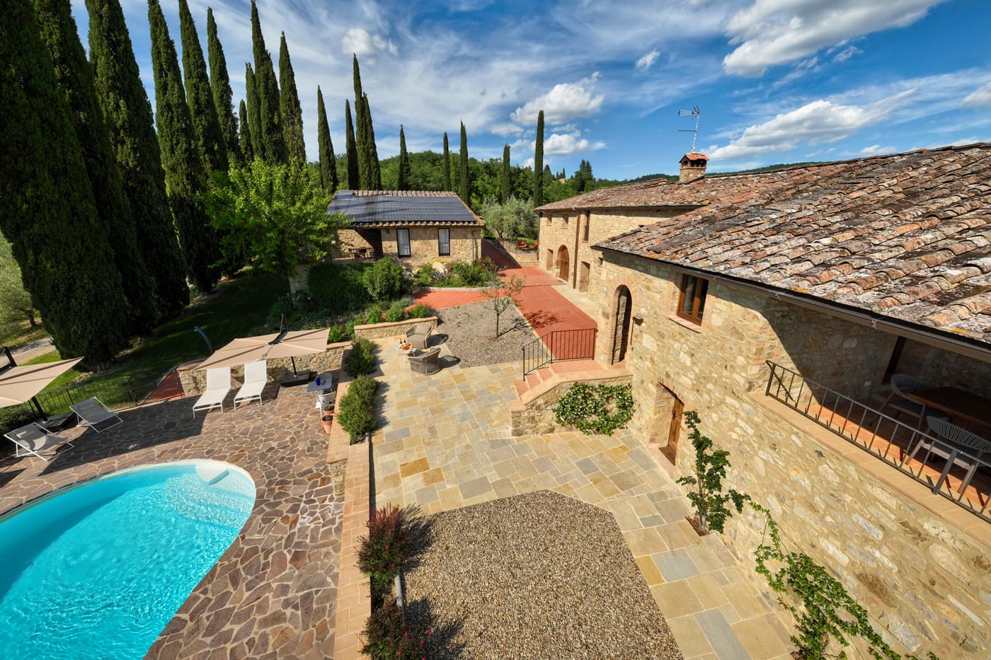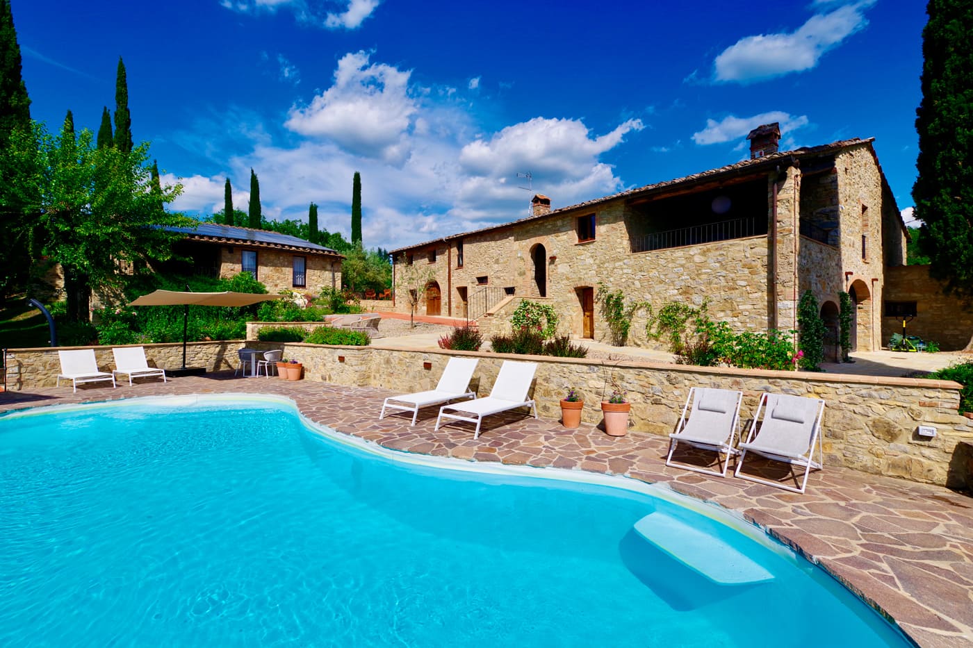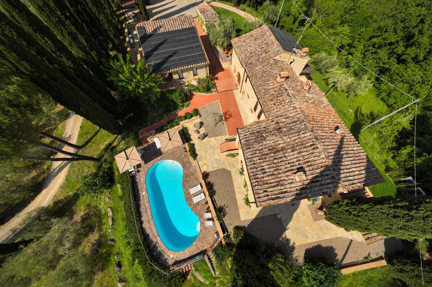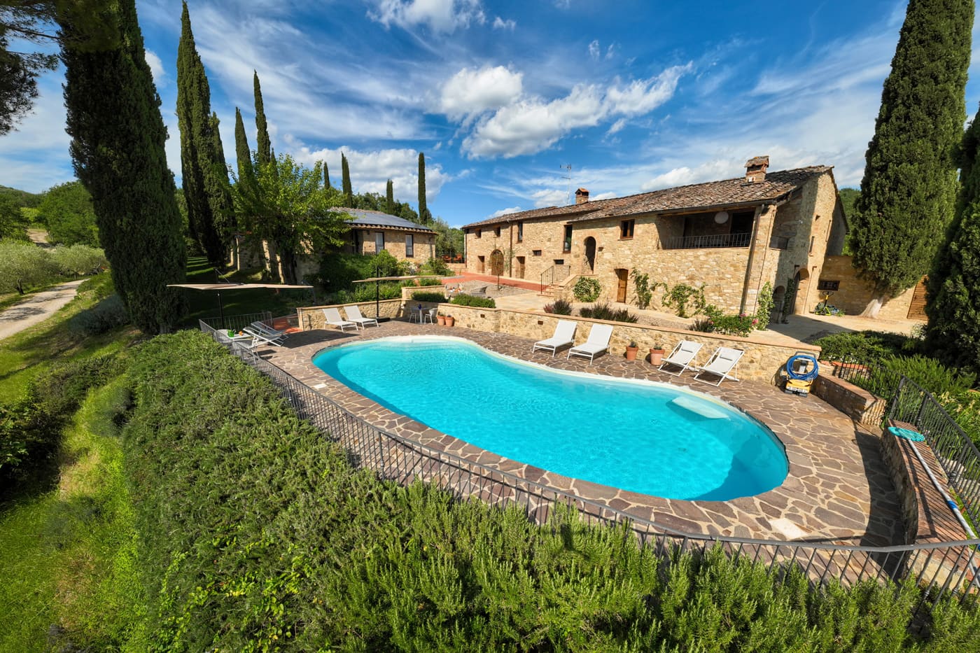 Setriolo is a very beautiful and recently renovated ‘Podere’, a running organic winemaking farm about five kilometres from Castellina in Chianti. It is accessed along a two-kilometre ‘strada bianca’, a ‘white road’ for which Tuscany is famous.