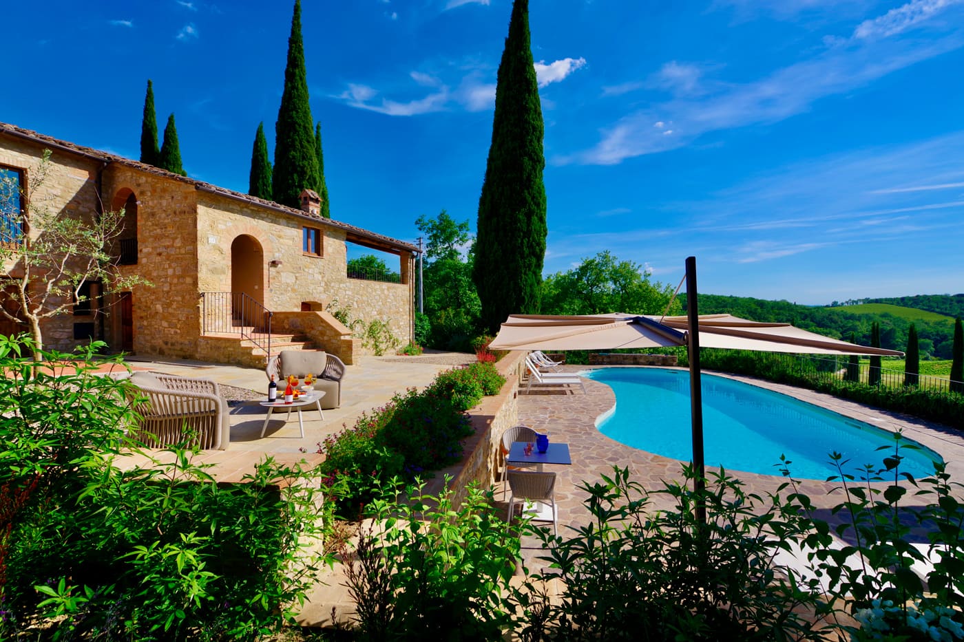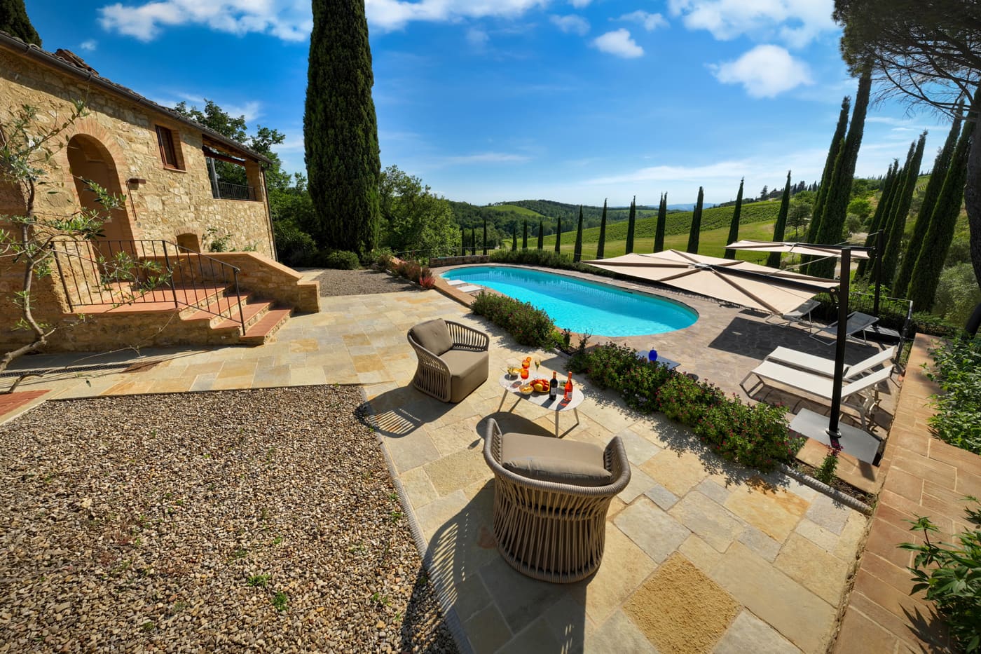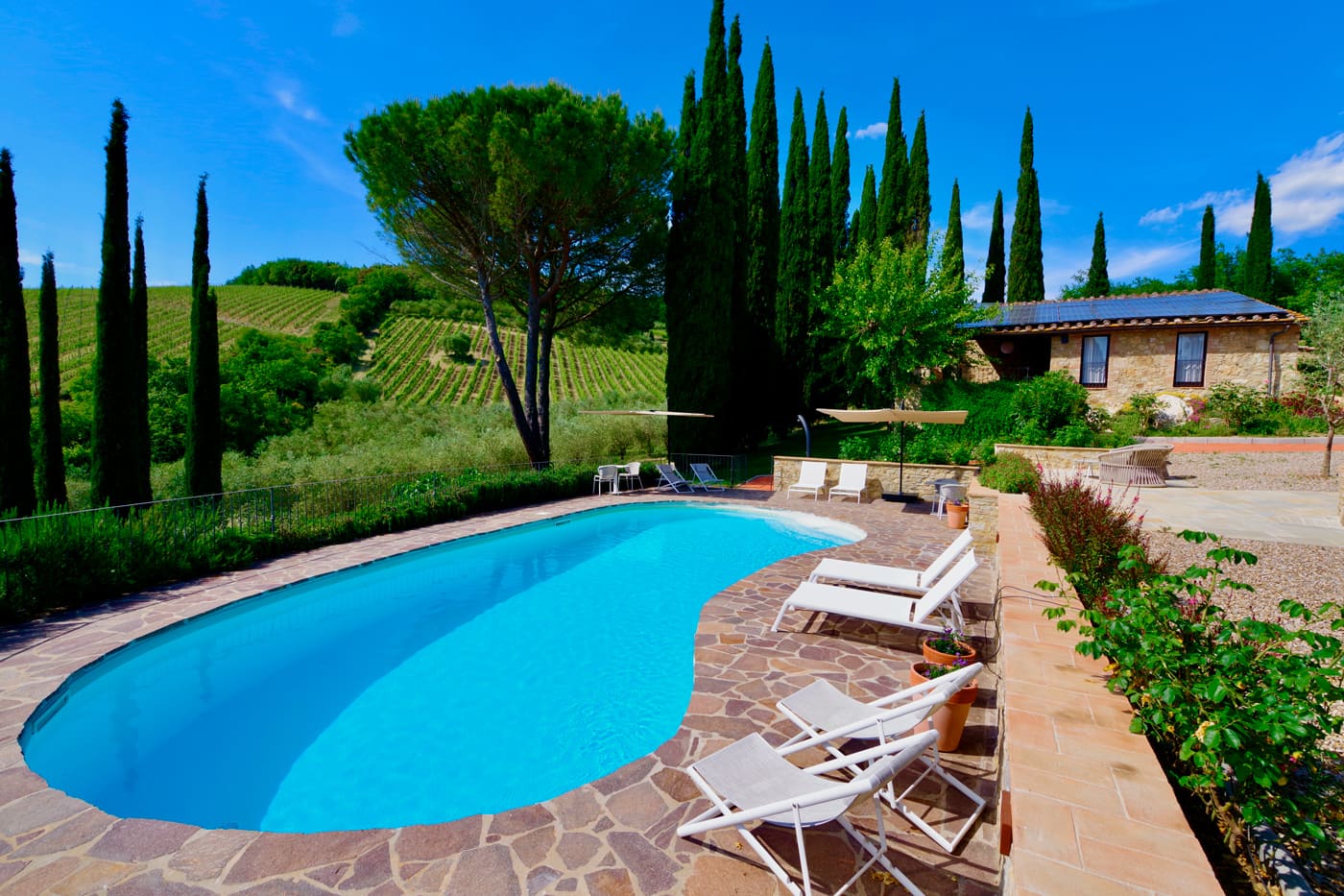 Nestled in the Chianti hills, the Podere Setriolo is a modern Villa with Annex within a wine making working farm, what a fun place to be.