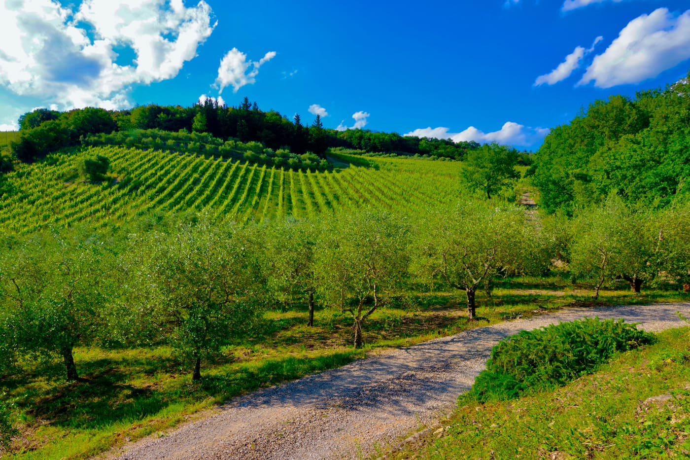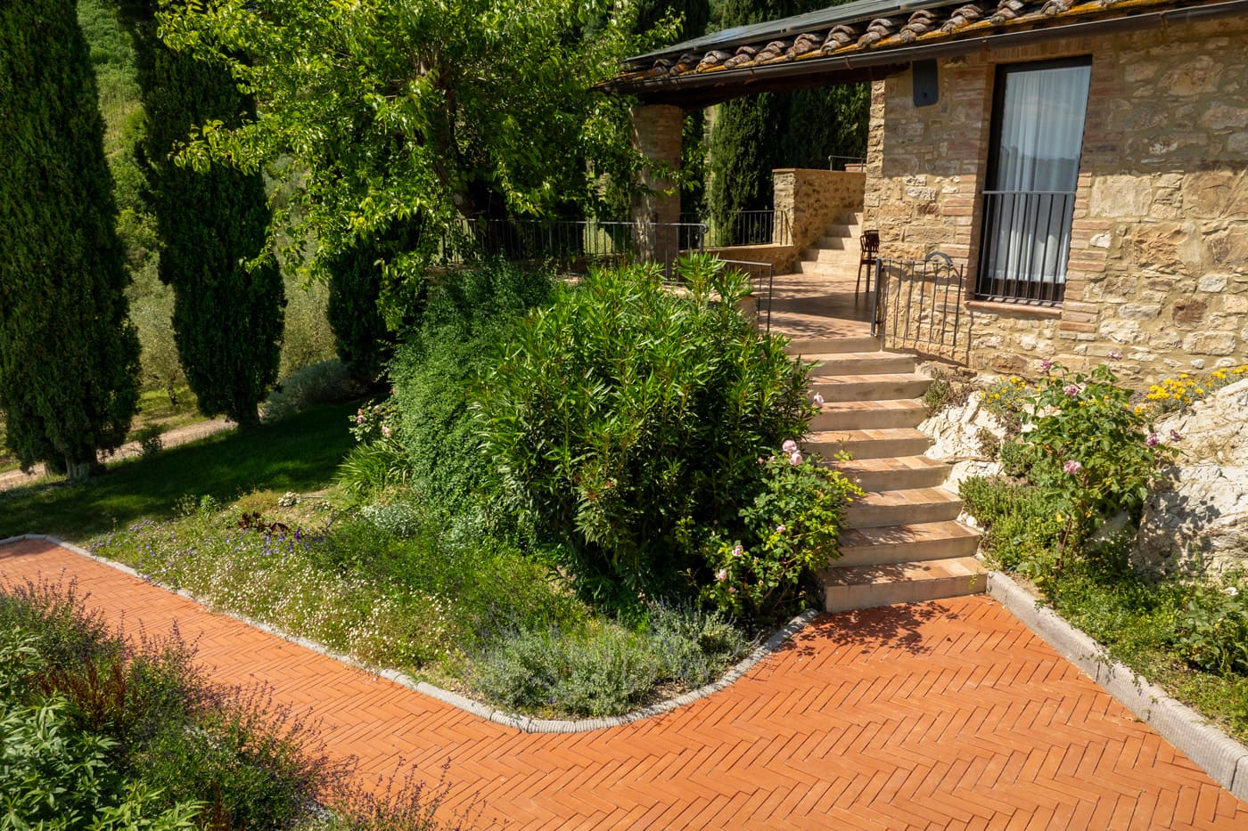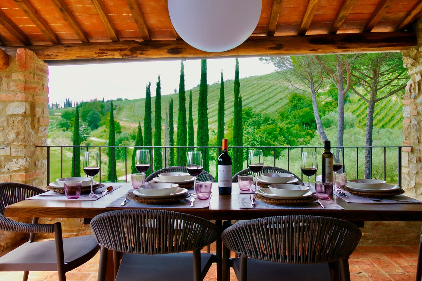 Once at Setriolo the view over the countryside is spectacular, through the lines of cypress trees, over the vines and olive groves.