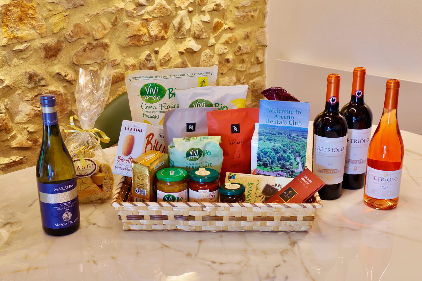 We wish to make our Guests feel at “home” and enjoy all amenities that Tuscany may offer. A generous complimentaty Welcome Hamper is offered with selected wines and food upon arrival.